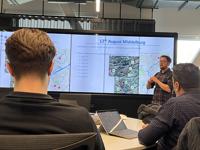 The other scientific accompanying programme on the agenda in Middelburg was temperature monitoring, which has been set up around the 9 pilot sites. Measurement data from last summer were presented. These illustrate that even small or medium-sized cities can register temperatures up to 5 degrees higher during heatwaves than the rural surroundings of these built-up areas.