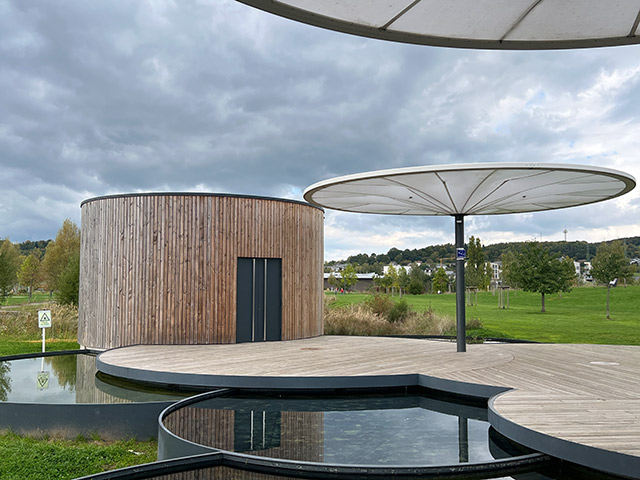 - Pavillon Source Belval: Pavillon, deen un d’Geschicht vum Mineralwaasser vu Belval erënnert a wou een och eppes Klenges iessen oder e Patt drénke kann